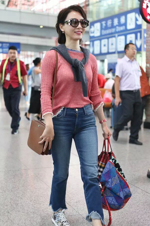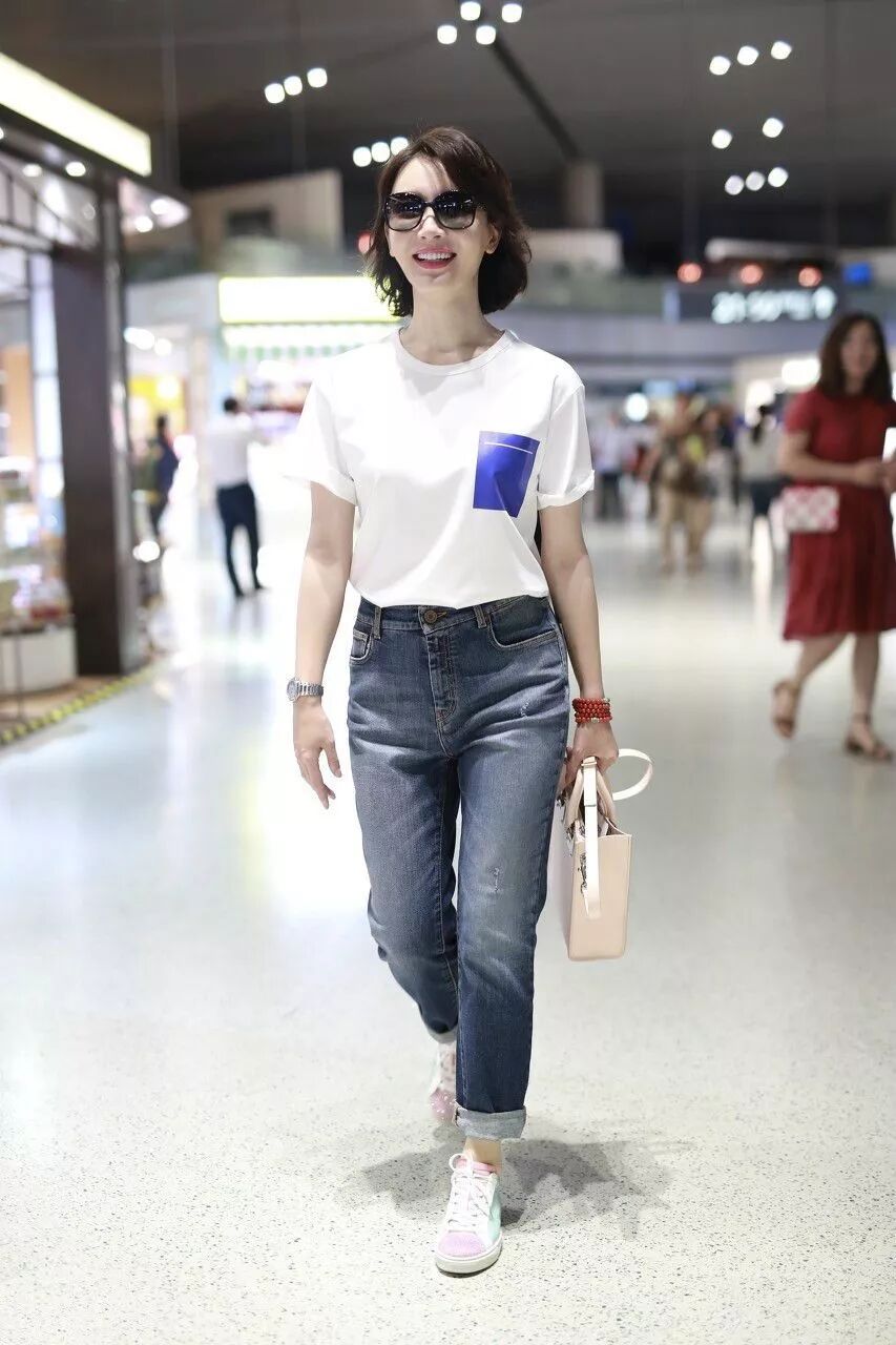 搭配的褲子,就有待提高了,牛仔長褲,硬是讓陳數穿出了五五分的身材,看的網友有些尷尬,好身材真心不是這麼穿的。