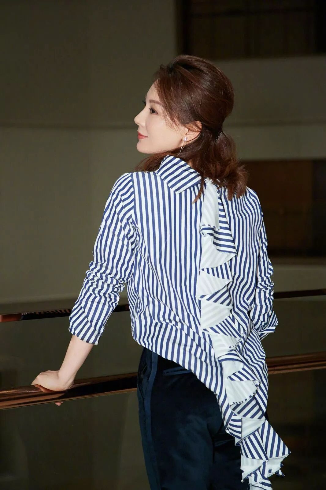 陳數平時的穿衣品味,還是很有風格的,一件條紋襯衫,背後的設計,更加迷人,宛如一條絢麗的麒麟,美出新高度。