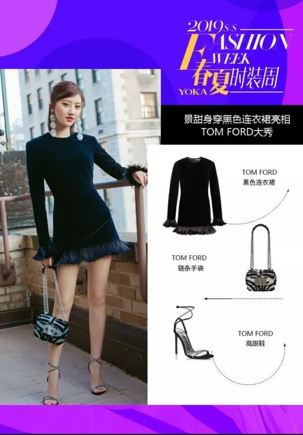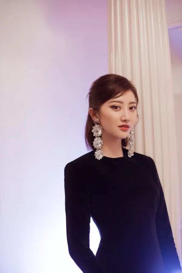 景甜這條裙子特別優雅穩重,華麗有質感的絲綢小黑裙,流蘇的裙邊更顯精致。