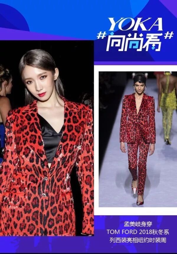 首次看秀的山支大哥這次更是驚艷亮相,她這件TOM FORD 2018秋冬系列紅色豹紋西裝,去年YOKA小姐姐看秀的時候就在想到底什麼樣的人能駕馭的了這麼霸氣的外套,今天孟美岐演繹的非常有個性, 帥氣但是不失本身的甜美。