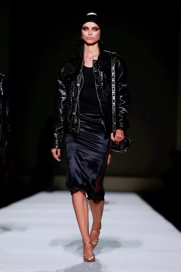 本季鱷魚紋路大面積出現在外套之上,成為了絕對霸氣的存在,華麗而且色澤極其鮮艷,盡顯高貴風格,加之同樣華麗風格的絲綢和絲絨元素,是設計師最鐘愛的奢靡腔調。