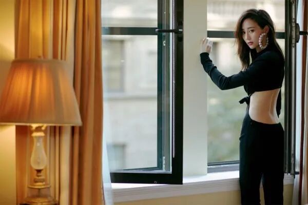 這條連體褲更是小「心機」的大面積露腰,性感的露出小蠻腰,身材超好!