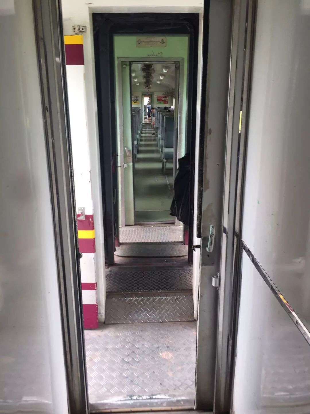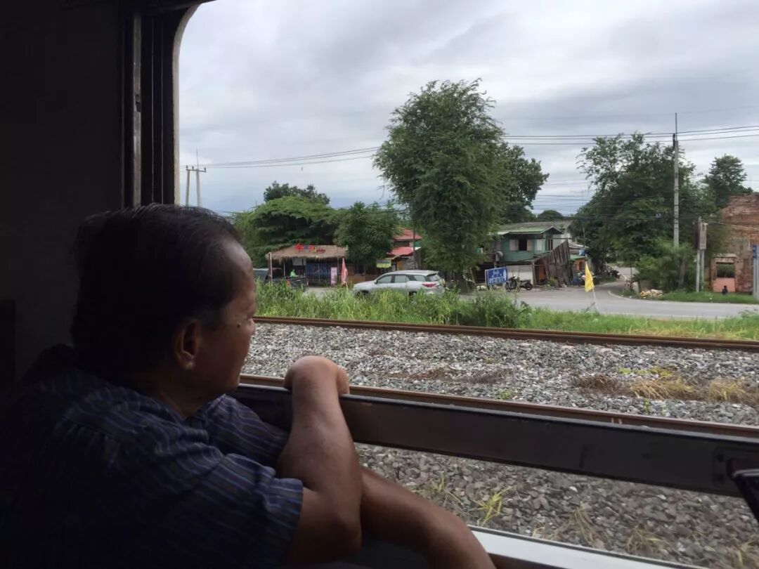在泰國旅遊,火車也是自由行遊客可選的交通工具之一,前提是如果你不趕時間的話。我們上車體驗了一番,車廂內飾接近於大陸的綠皮火車,車廂內沒有空調,頭頂的風扇飛速旋轉,古老的機車緩慢地前進,所有的窗戶大敞四開。