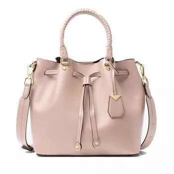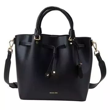 MK Blakely系列桶包 柔軟皮革搭配編制手柄,細節豐富。 抽繩封口、可調節肩帶, 輪廓精致可人。 時尚桶包,輕鬆出入各場合。