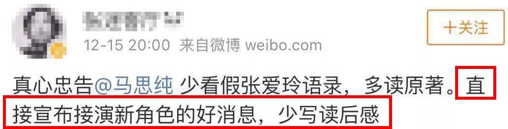 周末,馬思純發了條微博:讀《第一爐香》有感。引用了張愛玲「語錄」,惹怒了張愛玲粉絲。