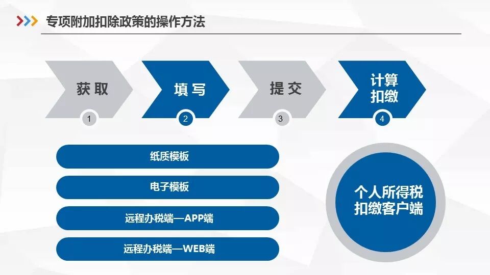 申報人最關心的,如何申報的指南也已經發布,6個專項扣除,需要員工個人準備材料並提交申請,申請方式有三種: