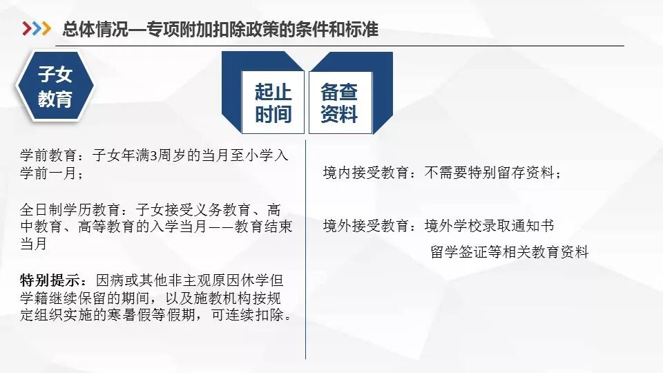6項專項扣除的享受條件,標準方式,起止時間,備查資料