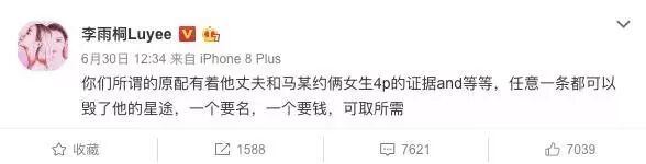 4.李雨桐曾為他懷孕並打掉孩子,在手術過程中大出血,她父母借此事勒索自己五千萬,最後兩百萬成交。