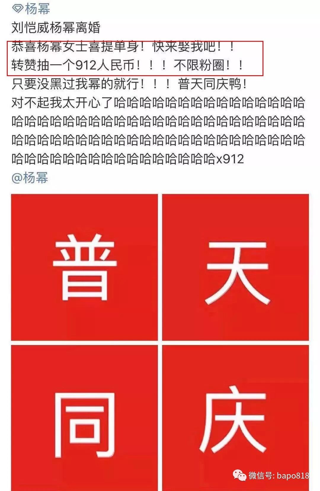 興奮的楊老師粉甚至還與民同樂的發起了各種離婚抽獎活動。