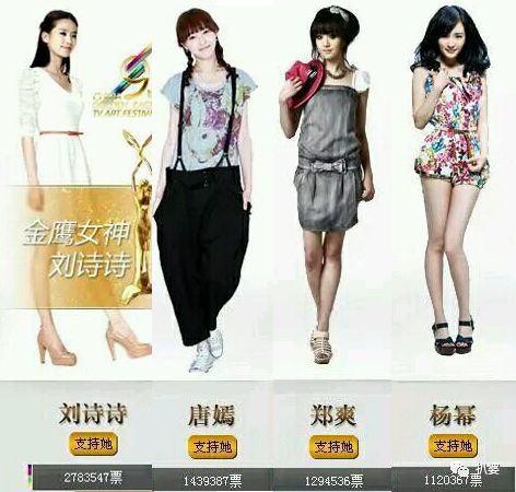 一、2012年,劉詩詩在金鷹女神的評選里票數一騎絕塵的贏了楊冪和她的新閨蜜唐嫣。