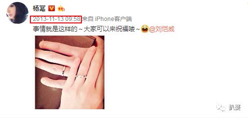 8個小時後,楊冪突然在微博公布了和劉愷威的婚訊。