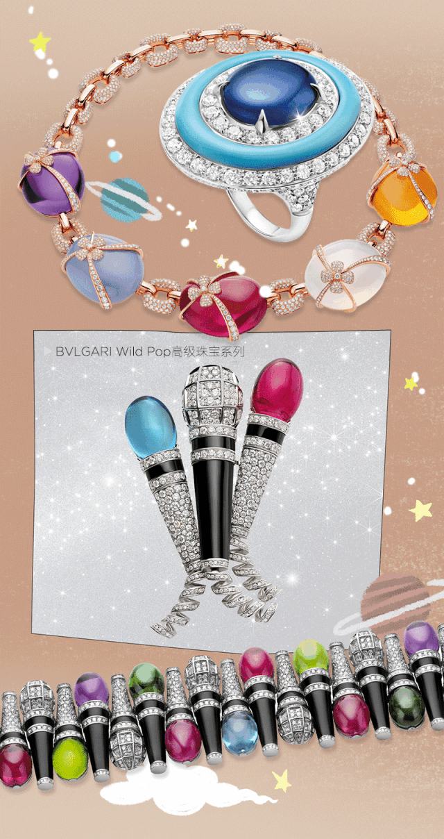啊!還有它,來自寶格麗的Wild Pop,靈感源自暢想美好、不羈咆哮的20世紀80年代,同時致敬波普藝術家安迪•沃霍爾。色彩繽紛的Pop Mics項鏈、手鏈與胸針從別具特色的麥克風造型汲取靈感。這些精巧的麥克風造型珠寶鑲嵌鑽石與縞瑪瑙,頂端飾以經特別切割的紫水晶、橄欖石、紅碧璽與海藍寶石,繽紛絢爛、光彩奪目。
