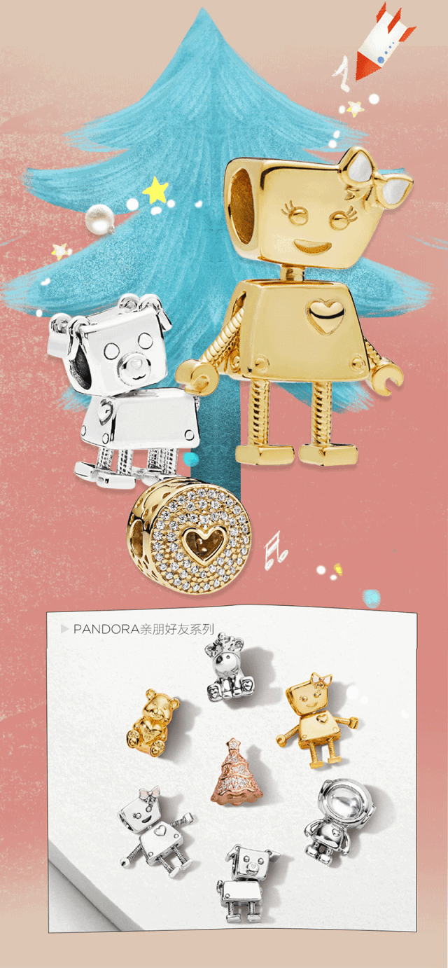 每一年的聖誕節,總少不了PANDORA熱鬧的身影。每當PANDORA家族的小夥伴聚在一起,總是充滿了濃濃的節日氣氛。聖誕小熊、暖暖的熱可可、愜意的聖誕之家……如果將它們串在腕間,童心會按奈不住地迸發而出吧?
