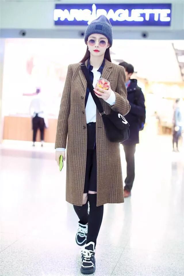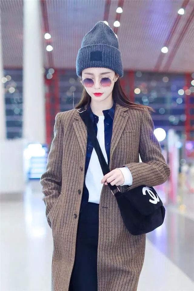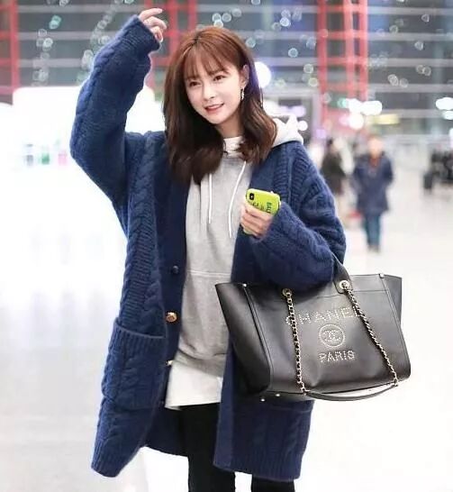 活潑開朗的沈夢辰,機場里格外接地氣,同時搭配的藍色針織外套,開衫設計,為自己加分,看起來更加具有活力。