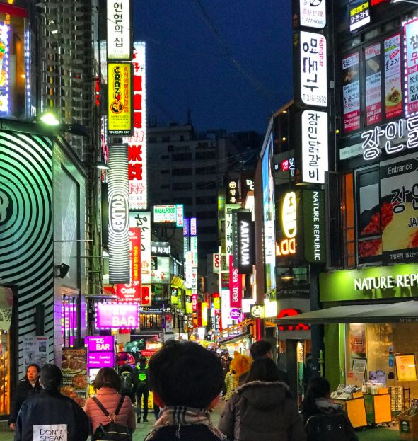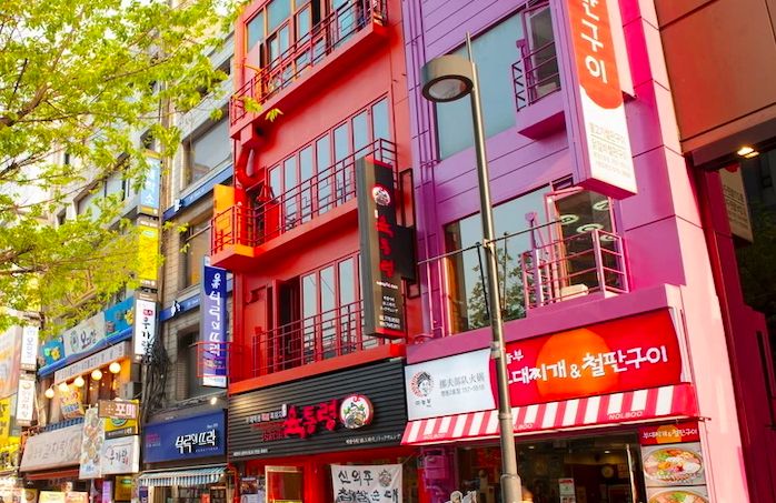 作為韓國大學街的代表,新村聚集著包括延世大學、梨花女大在內的許多名牌大學,距離弘大也僅有一兩站的距離,因此,這里到處都可以見到年輕學生的身影。