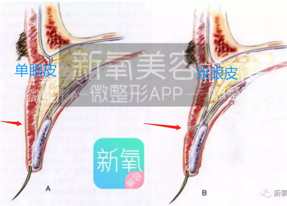 單眼皮和雙眼皮的區別就是:雙眼皮的眼睛上某個層次和皮膚有一個點是融合的,所以當睜眼的時候,這個點會拉著眼皮往上,形成雙眼皮褶皺。 (更精確的說法:上瞼提肌筋膜和眼輪匝肌和皮膚之間有關聯)