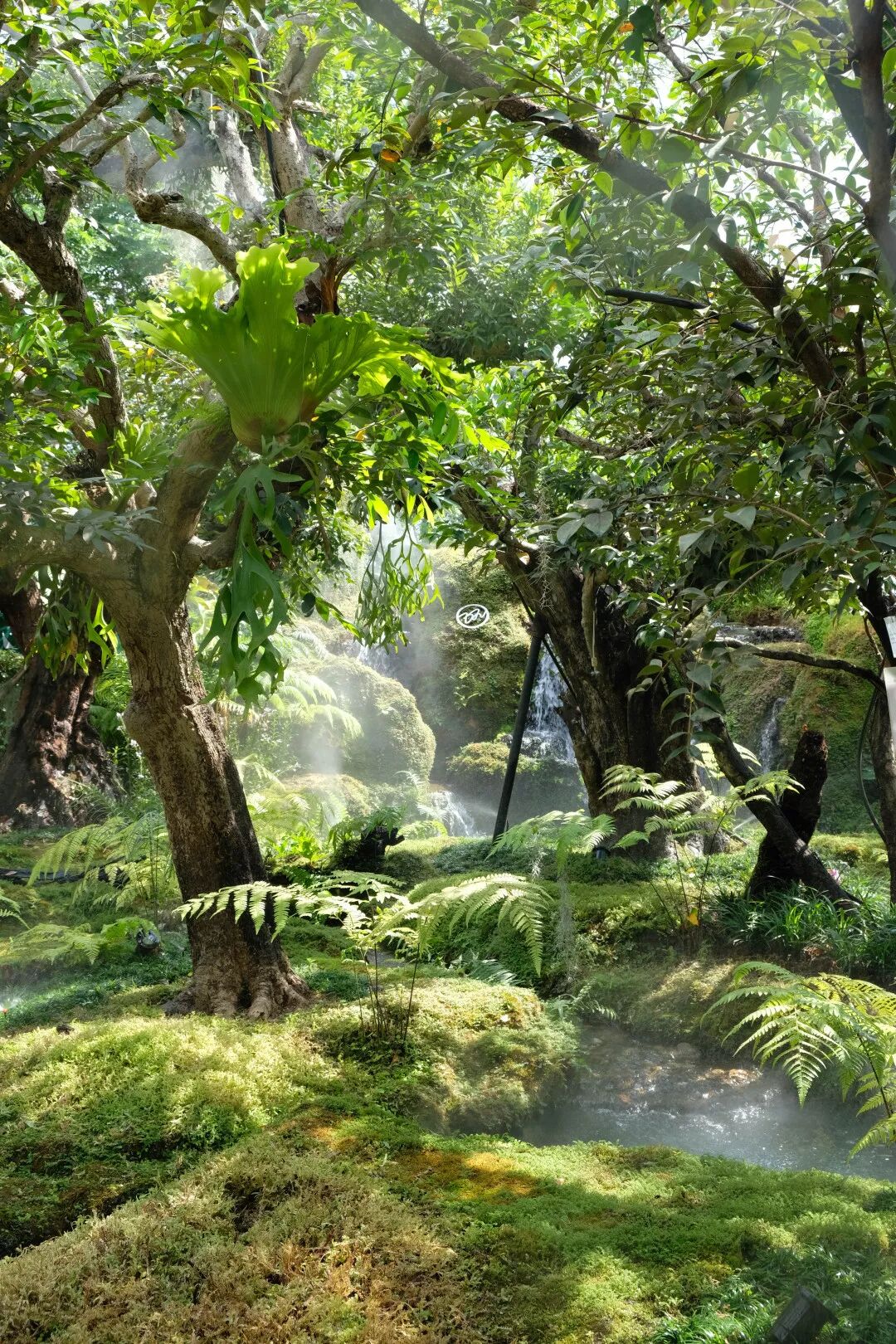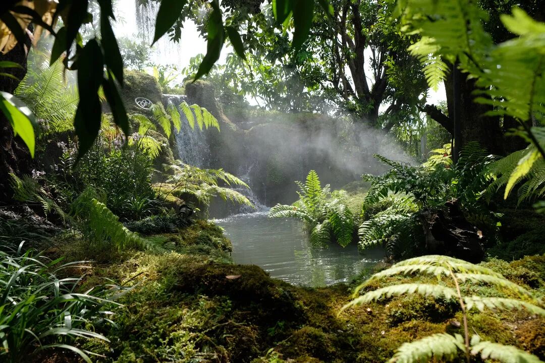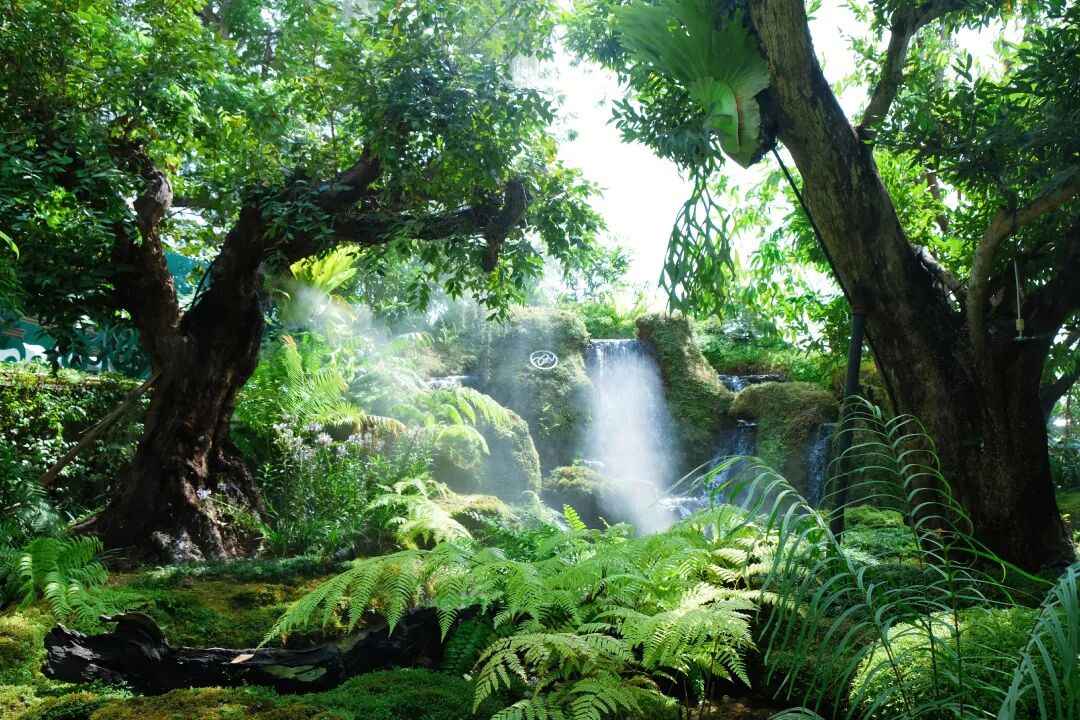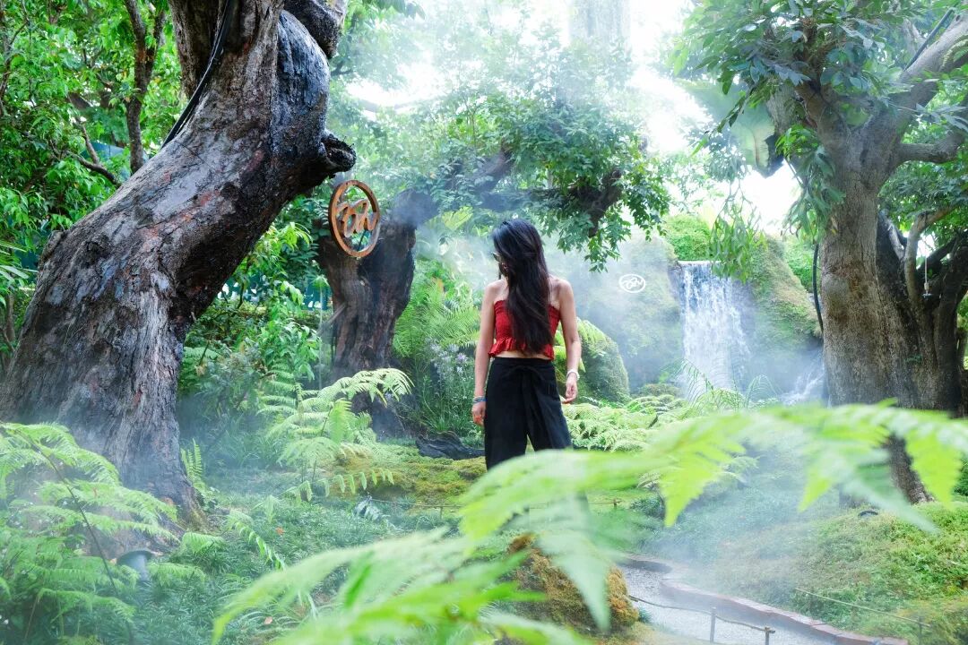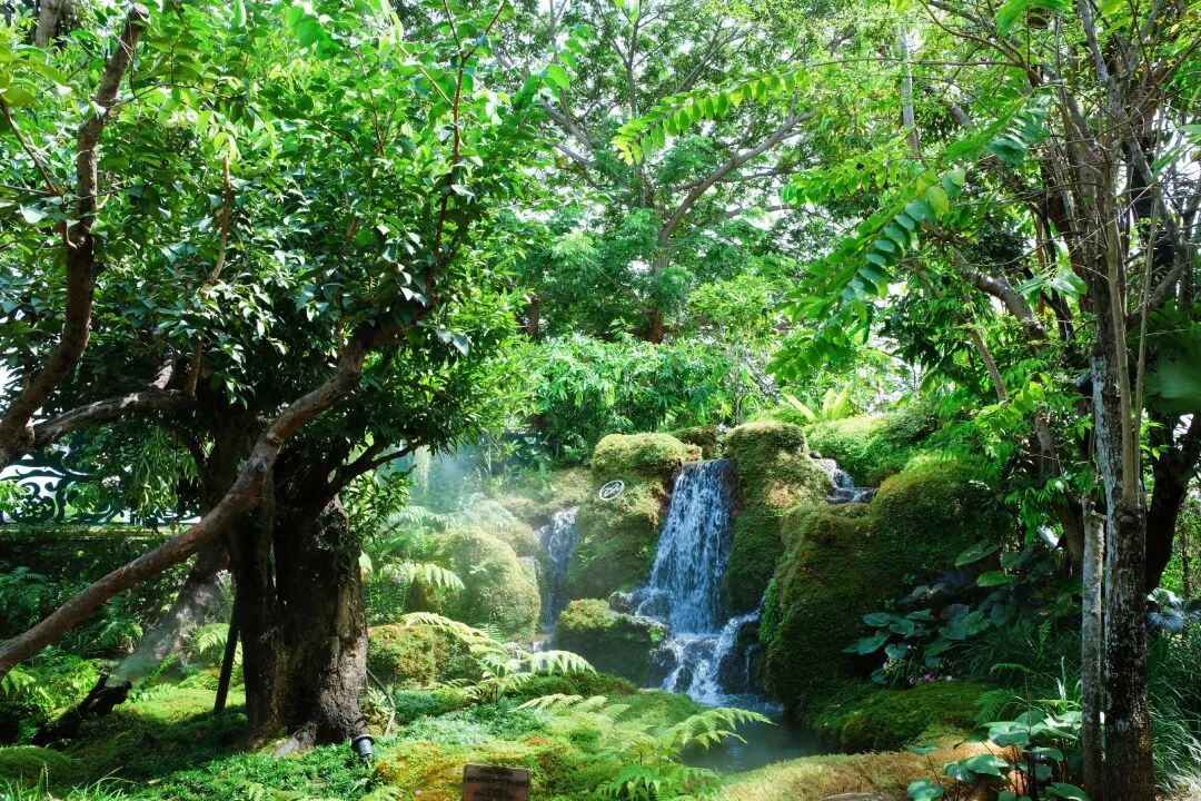 Chom簡直就是人間仙境,美上天。餐廳的後花園有著高大的熱帶樹木,各種綠植,還有小瀑布和遊著很多錦鯉的河,為了保濕效果,空間里持續噴散著細膩的水霧,營造出了煙霧繚繞的夢幻效果,誰進去誰就是小仙女本人。