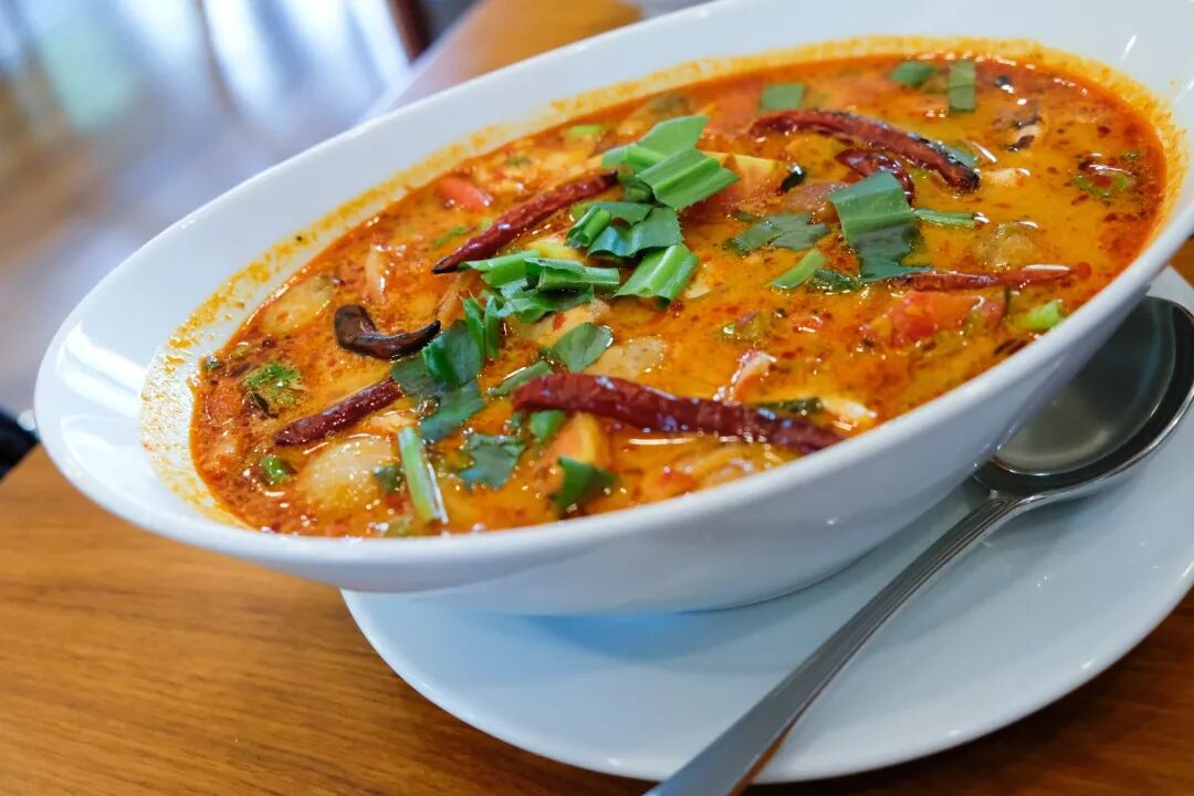 這里的泰國菜要重點推薦「等等魚」,也就是酸辣檸檬蒸鱸魚,味道酸酸辣辣的(寫到這里流口水),魚肉鮮嫩,寶藏女孩兒說這道菜上來後要等等再吃,越到後來湯汁味道越濃,全部滲進魚肉里,好吃程度+1234567,親身驗證,是一道很適合跟朋友一邊聊天一邊享受的美食。