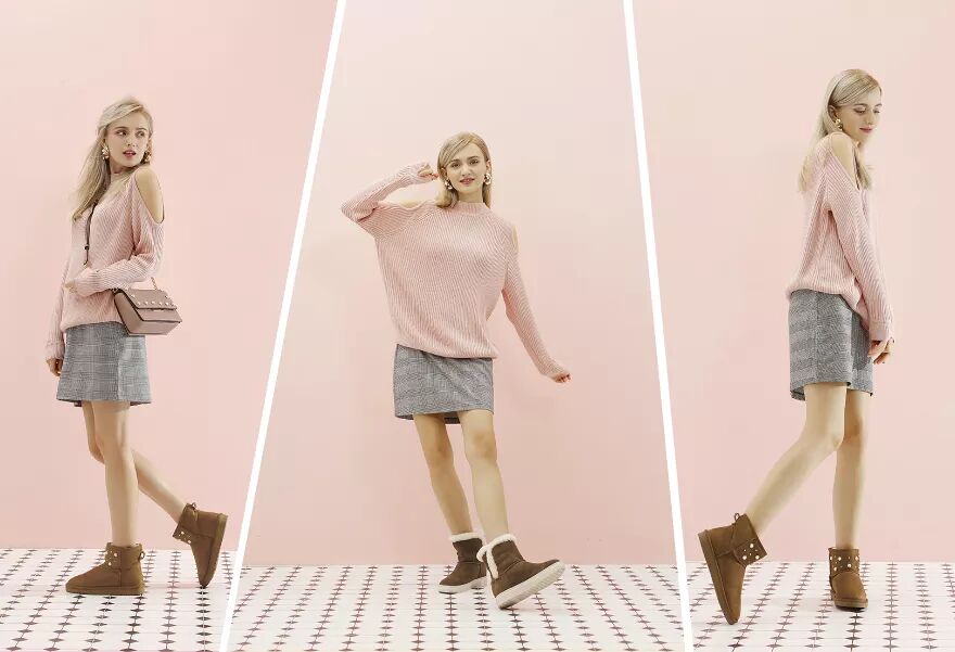 所以美眉們可以選擇中筒的雪地靴,舒適保暖不顯胖。短靴雖然保暖性差一些,但是時尚潮流不挑人,誰穿誰好看。