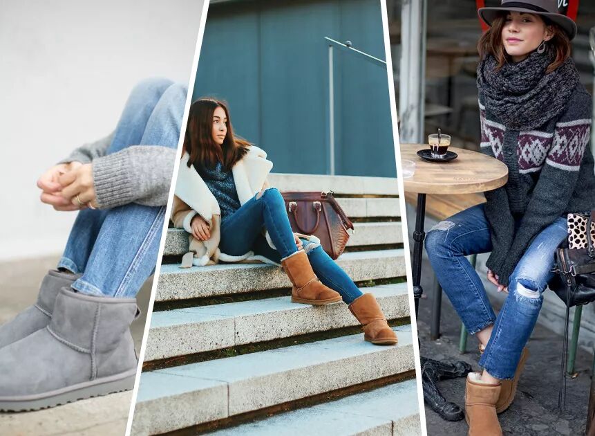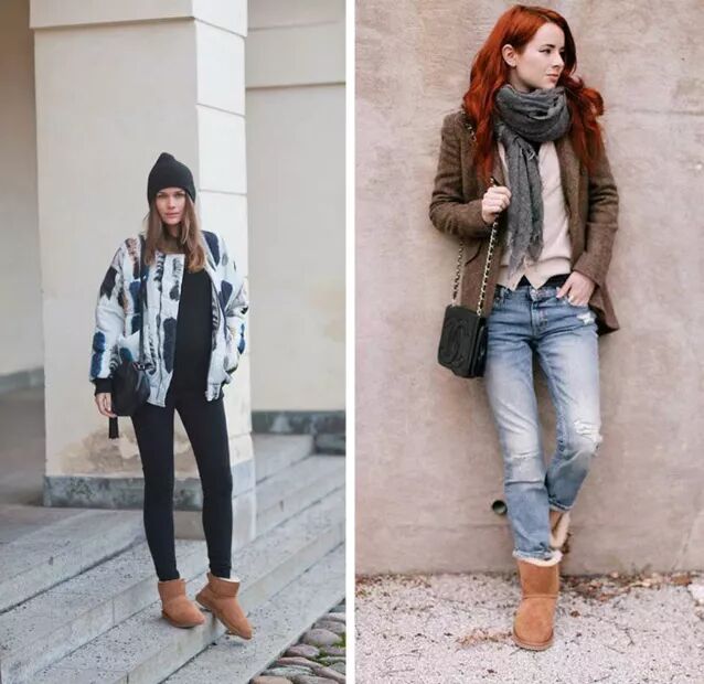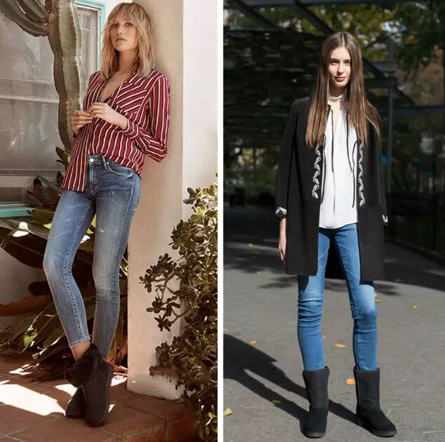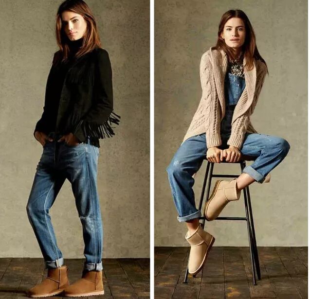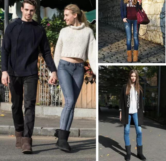 黑色雪地靴百搭,栗色雪地靴和牛仔褲的經典搭配肯定錯不了。