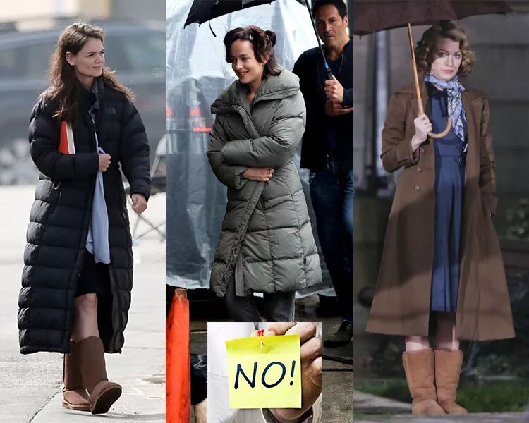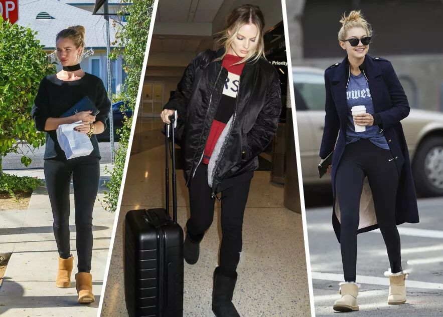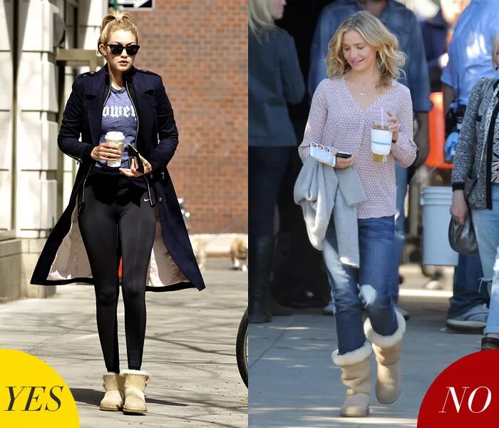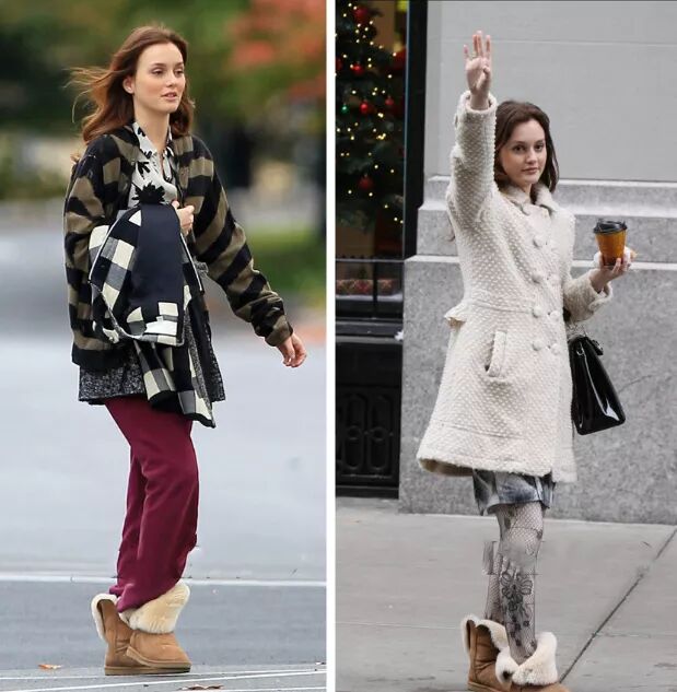 雪地靴給人的感覺是寬鬆的,上面的褲子就要緊。上身也是穿的簡潔利落為佳,就不要再搭配皮草這種感覺膨脹的單品了。