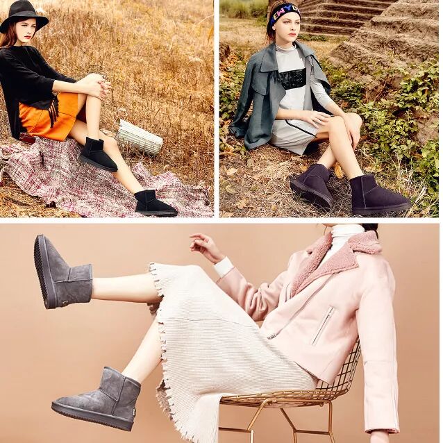 黑色、棕色、灰色都是不容易出錯的顏色,如果對於時尚穿搭還沒積累出心得的美眉們,在挑選雪地靴上以穩妥為主。