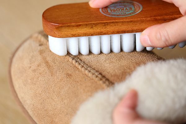 一旦靴子完全護理過後,可以使用專用絨毛護理刷一個方向輕輕刷理鞋身表面,幫助恢復絨皮表面天然絨毛自然漂亮順滑的紋理外觀。