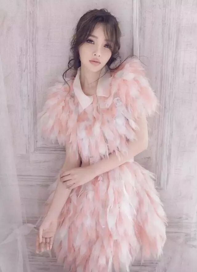 具有凌亂美的髮型,搭配羽毛連衣裙,仙氣十足的李小璐,充滿洋氣感覺,同時襯托白皙膚色,讓自己更加時尚優雅。