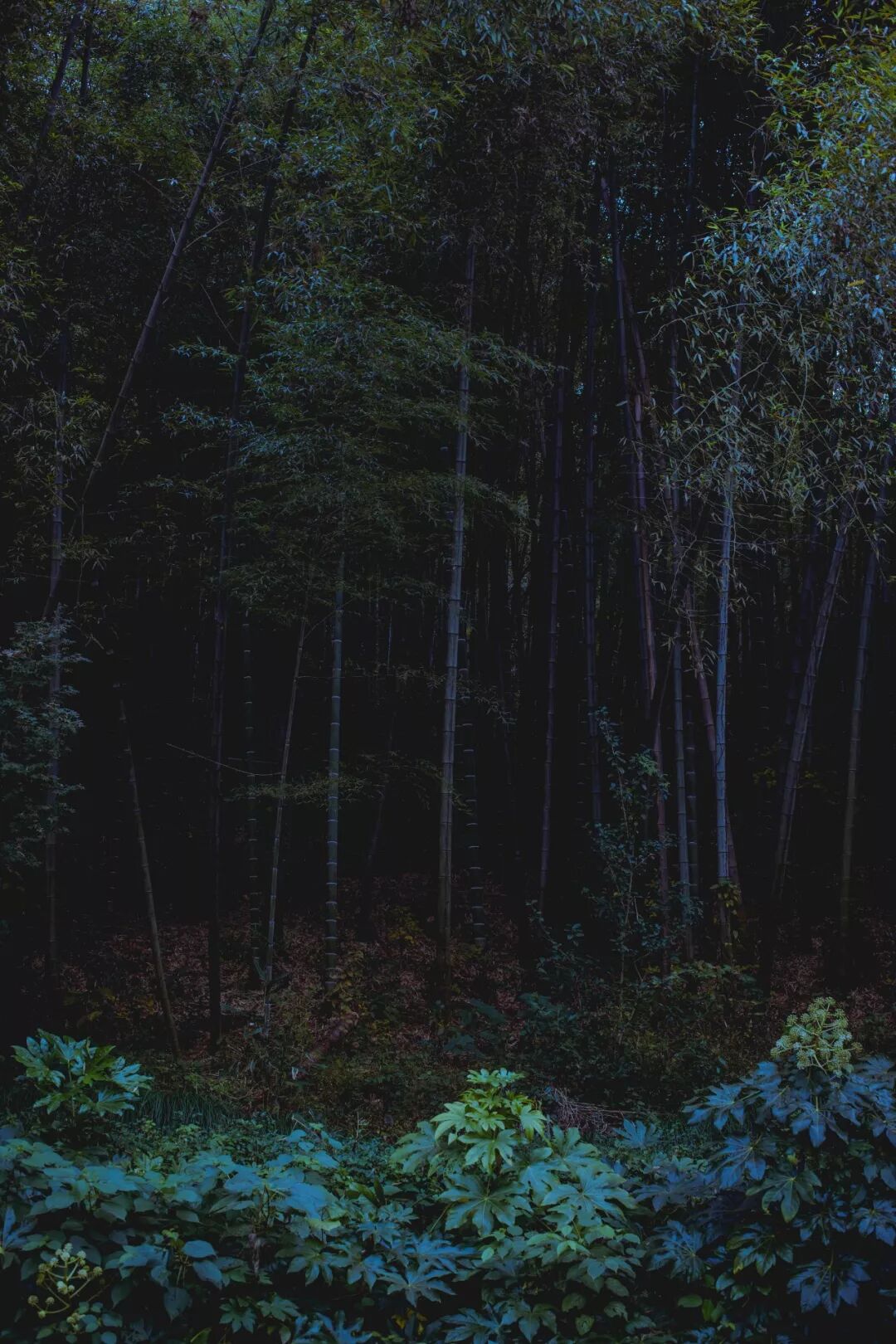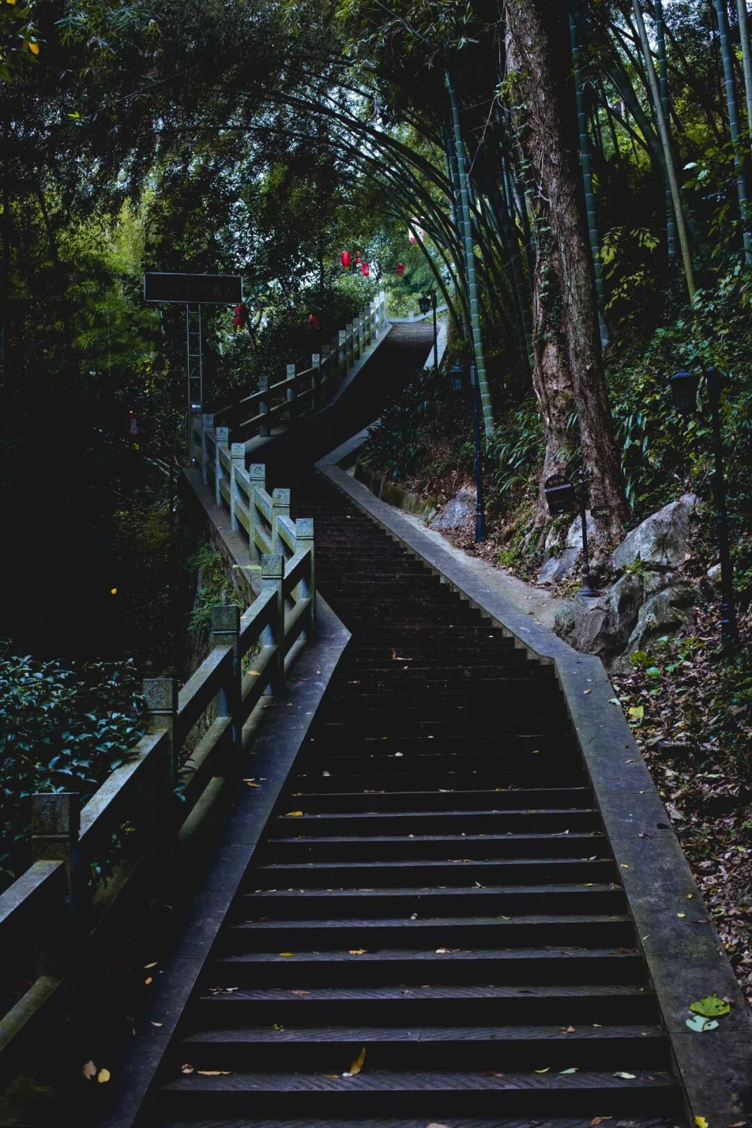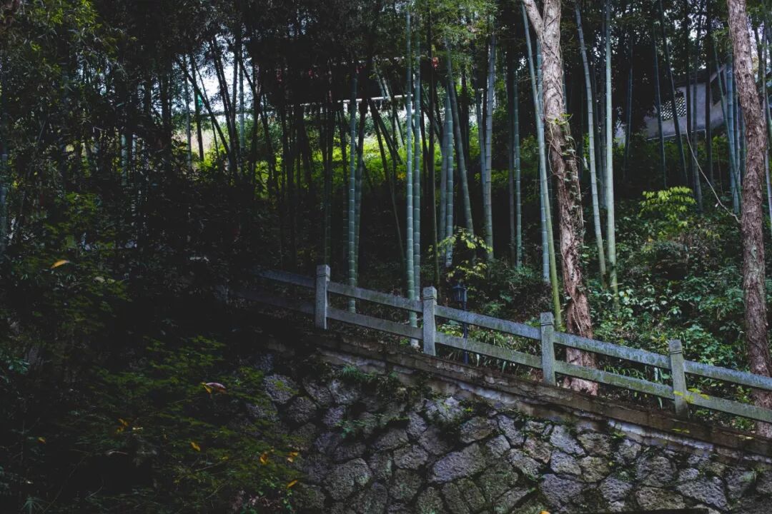 翠綠的竹子,長長的,不知要通到哪里去的台階,還有滿地落葉。