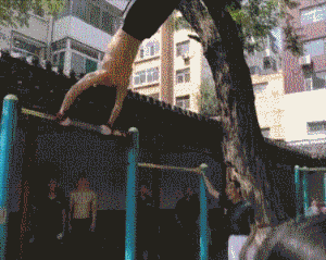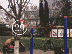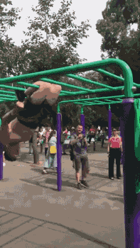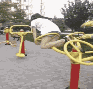 你可別以為小區健身器材就沒有大神了