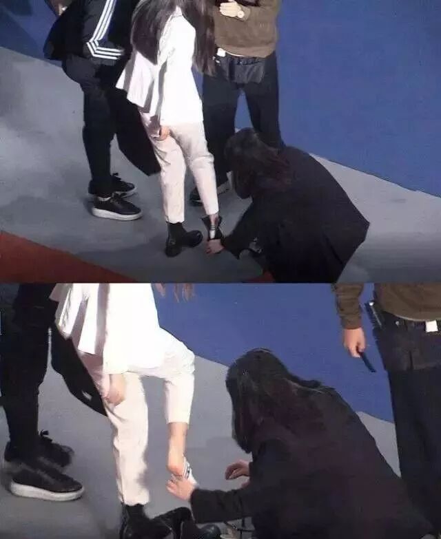 考慮到baby在拍攝,可能助理為她脫襪穿鞋也只是為了節省時間以及不打亂造型,也是無可厚非的