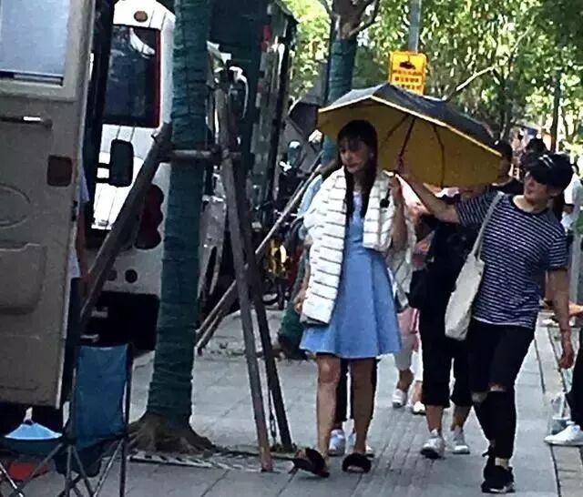 baby拍戲時穿著高跟鞋,導演一喊「咔」,旁邊助理就上前給她換上拖鞋,下場戲開拍時,就再把高跟鞋換上