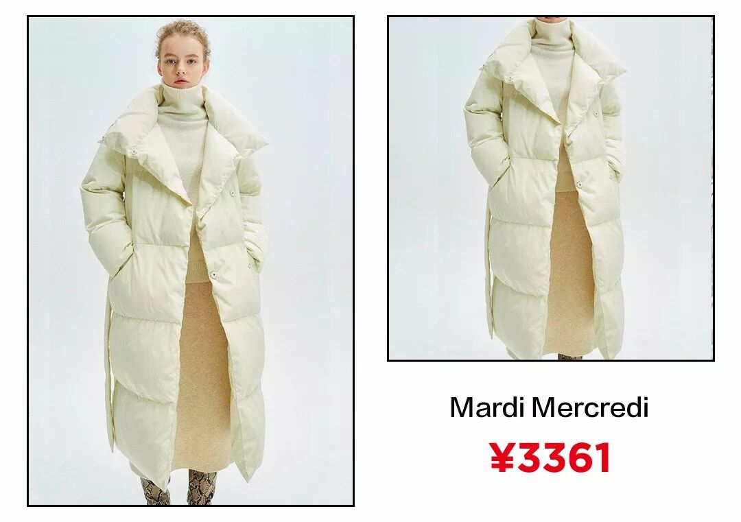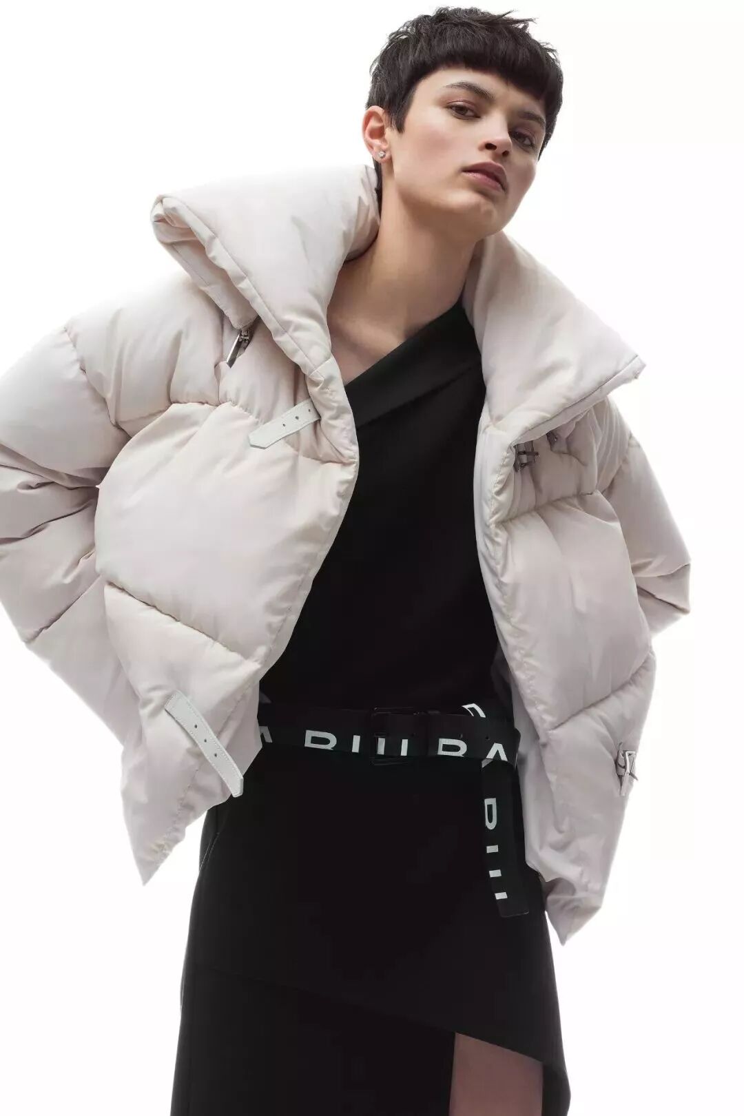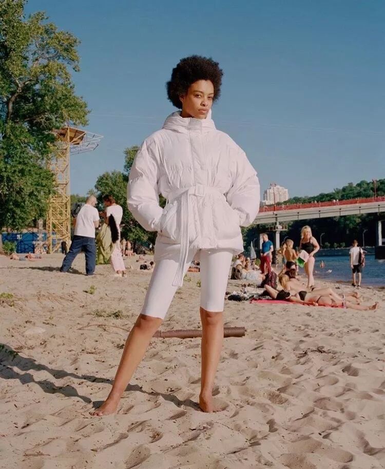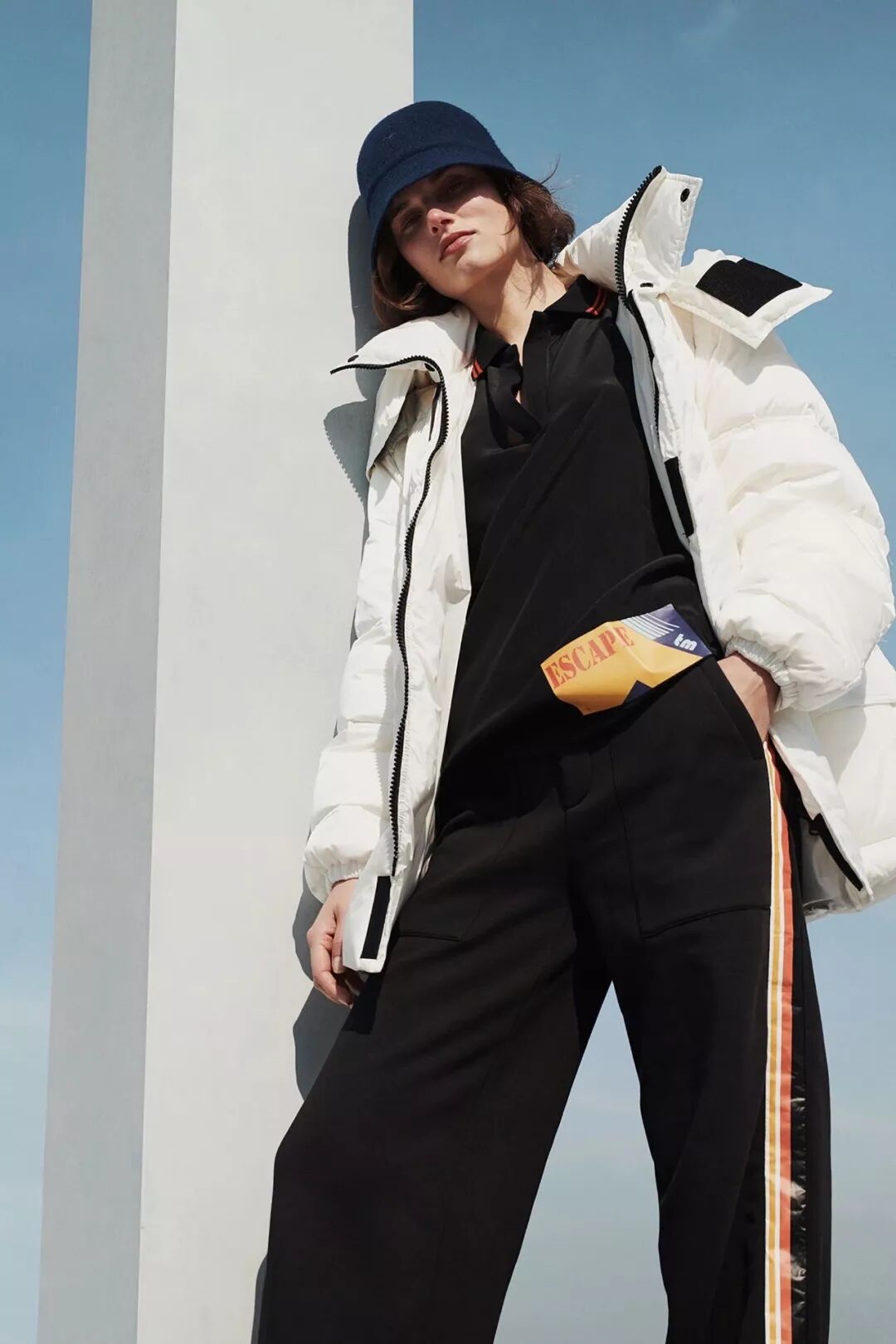 白色羽絨服的時髦與否,衍縫的寬度也占了很大的比例,寬度較大的衍縫格簡約耐看,在服裝的美感上也更經得起高級的推敲。