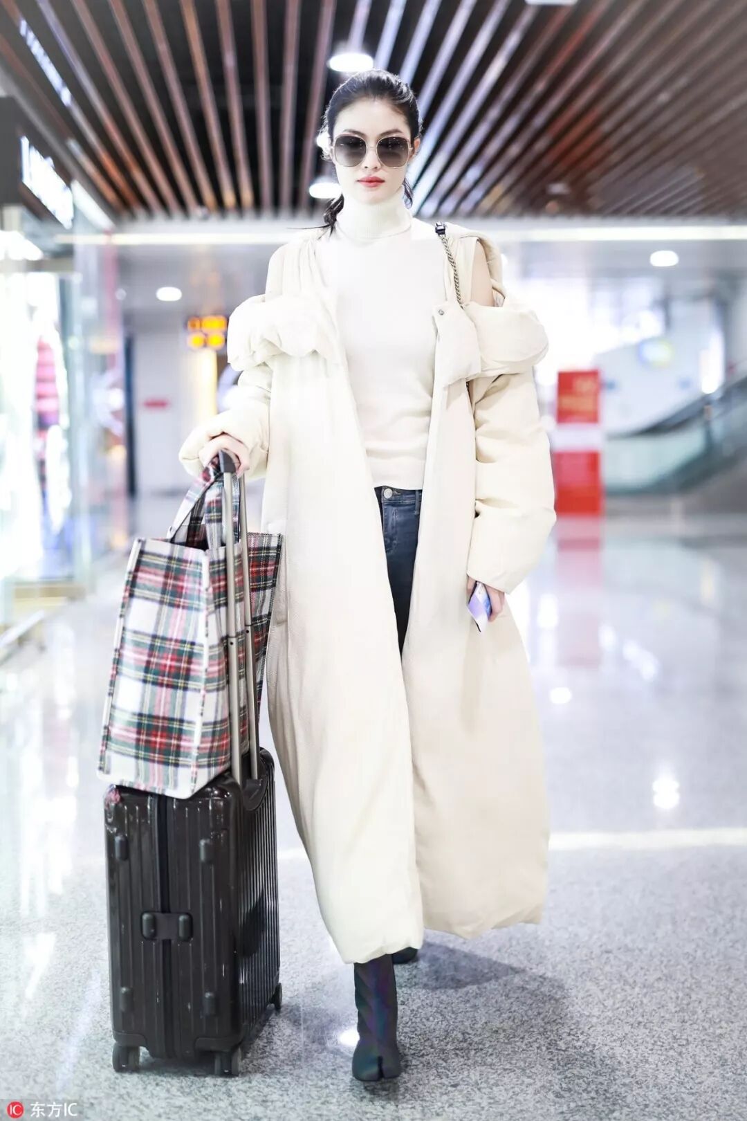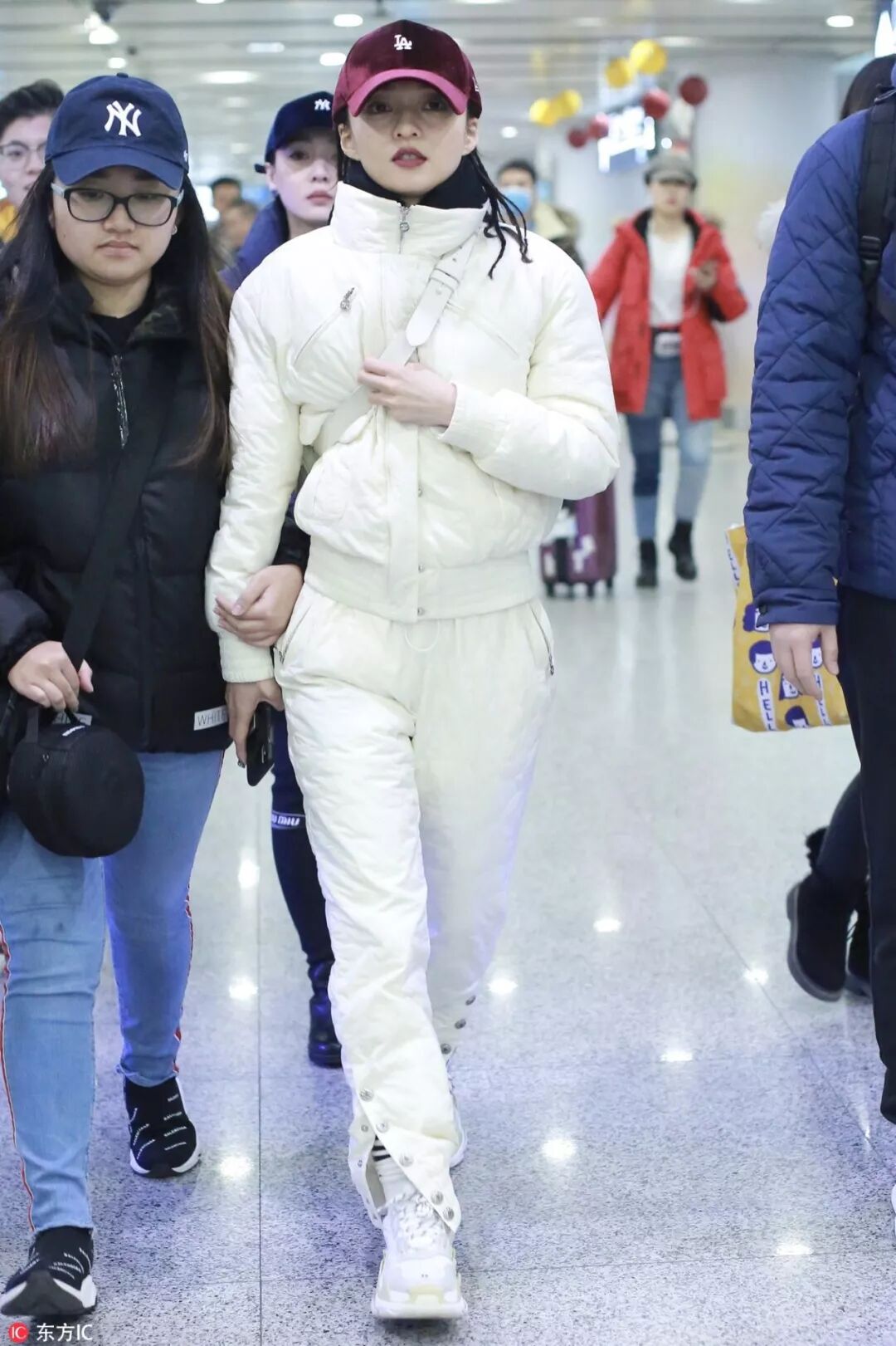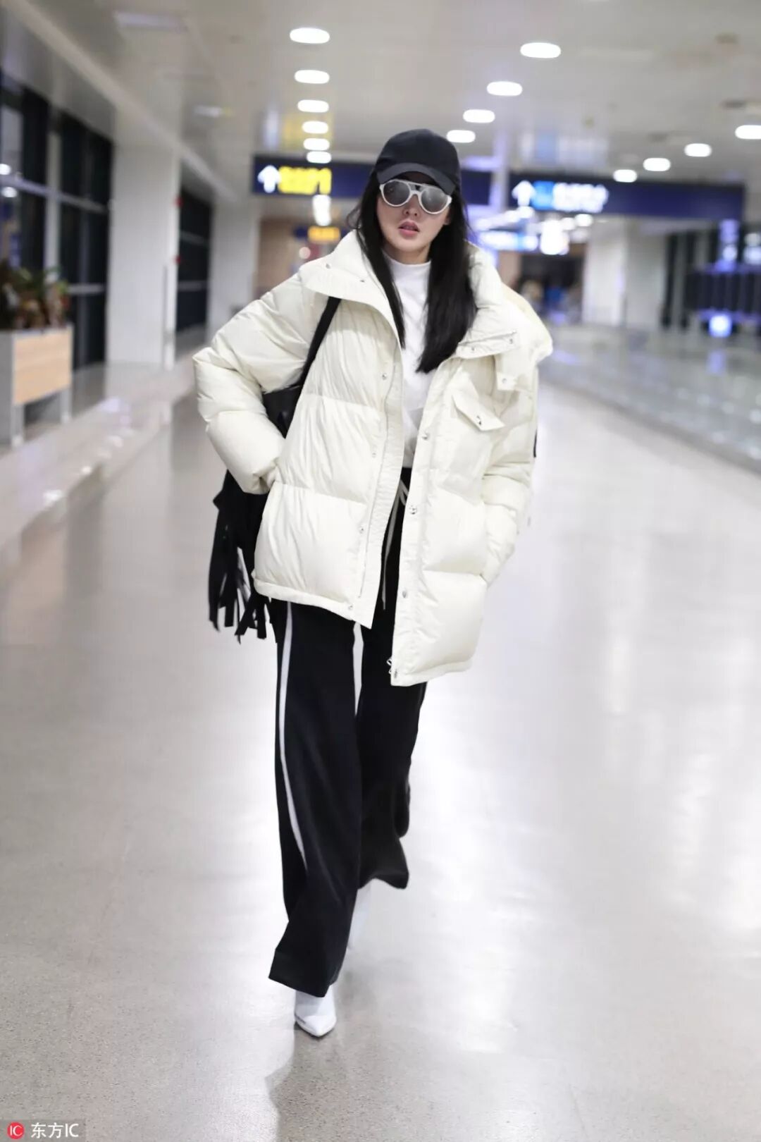 張天愛身著Oversize重廓形羽絨服現身機場的Look搶眼又吸睛,混搭邊線校服褲御姐架式十足,個性與清爽之間把控得當,盡顯長腿好身材。