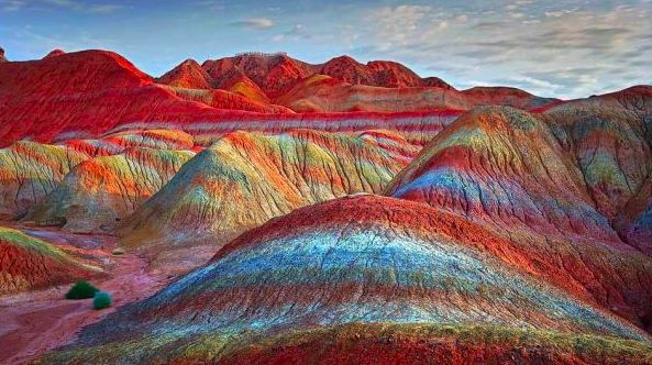 在中國甘肅,有一個地方遍布著地球上絕無僅有的炫麗群山,那就是張掖的丹霞地貌。在這里,群山之上,各種顏色的層層線條,將山脈妝點得輝煌燦爛。仿佛來自天邊的五彩祥雲,墜落到了人間。