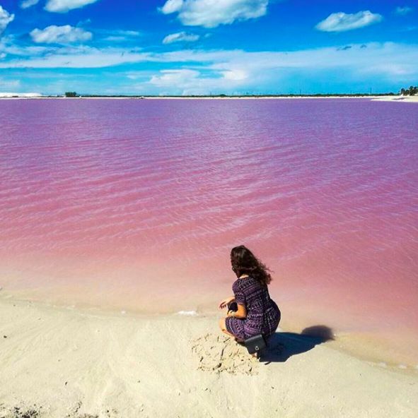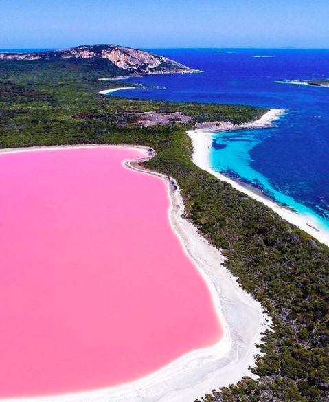 從天空中俯瞰,一道細細的海岸,將玫瑰色的湖泊與碧藍色的大海分割在兩岸。由於某種鹽藻的存在,玫瑰湖的湖水呈現綢緞一般的粉色——看來大自然也有一顆少女心~
