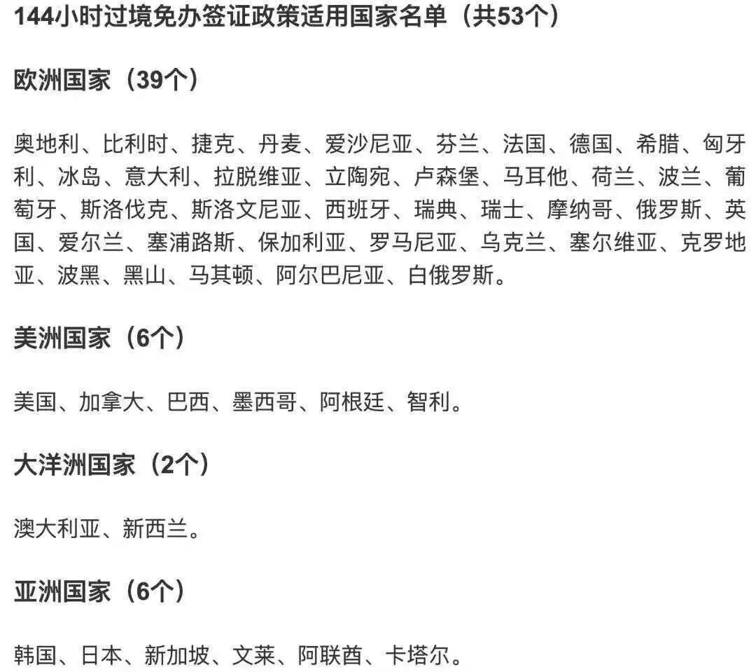 4. 2019年起53國人過境昆明144小時免辦簽證