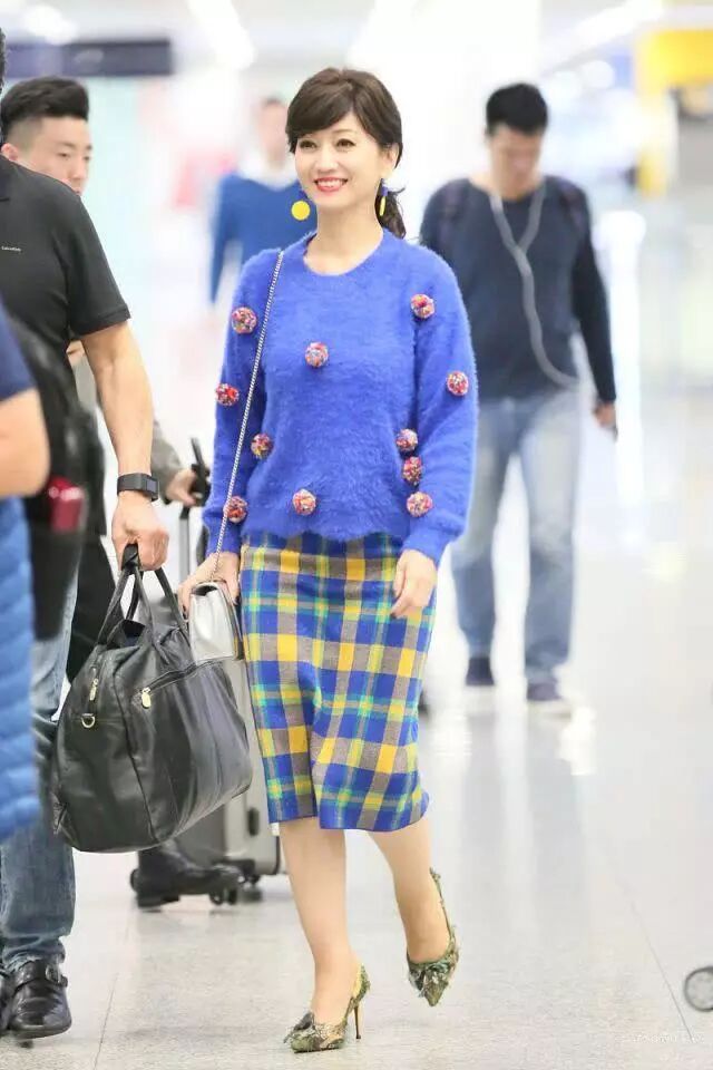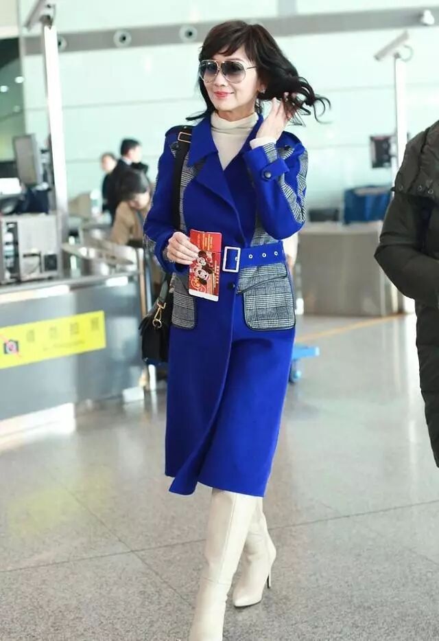 趙雅芝這個紐扣的扣法算是比較的特別,真是會趕時髦啊!而且她搭配了一條白色的緊身褲看起來本來會很顯胖的褲子,在她身上看著一點都不胖呢!