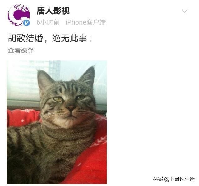 之後,胡歌的公司唐人影視於凌晨再次進行辟謠,8個字「胡歌結婚,絕無此事」,還配上了一個疲倦的貓貓表情包,看起來也是為胡歌的結婚謠言操碎了心。