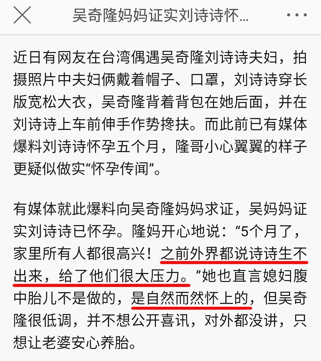 還說劉詩詩一直「生不出孩子」,這次只是無意間懷上的,語氣中滿滿的不屑一顧。