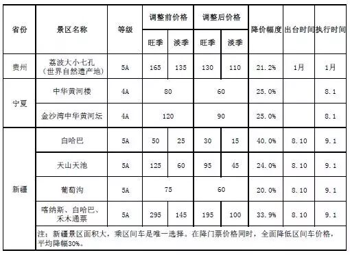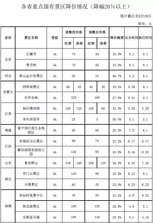 9月全國降價景區
