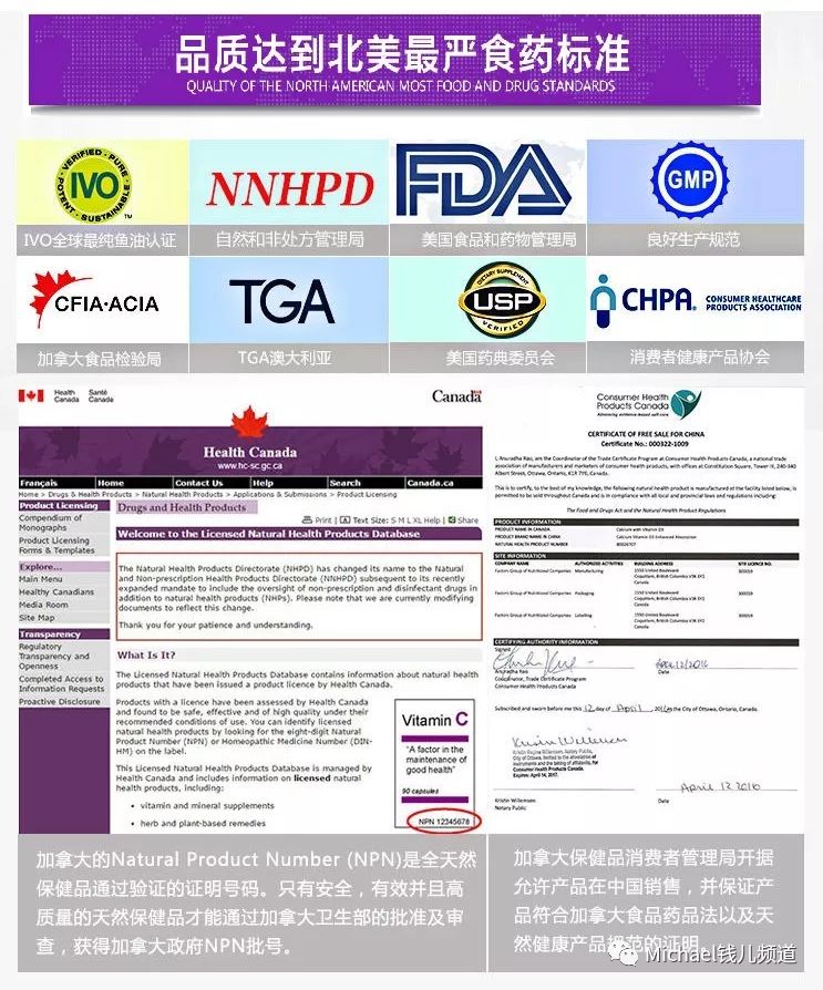 Webber Naturals的產品,其高效能、高純度、安全性通過加拿大CFIA(食品檢驗署)、加拿大NNHPD(自然和非處方保健品)、美國USP(美國藥典標準)、美國FDA(聯邦食品藥品監督管理局)等多項國際權威官方認證,品質有保障。