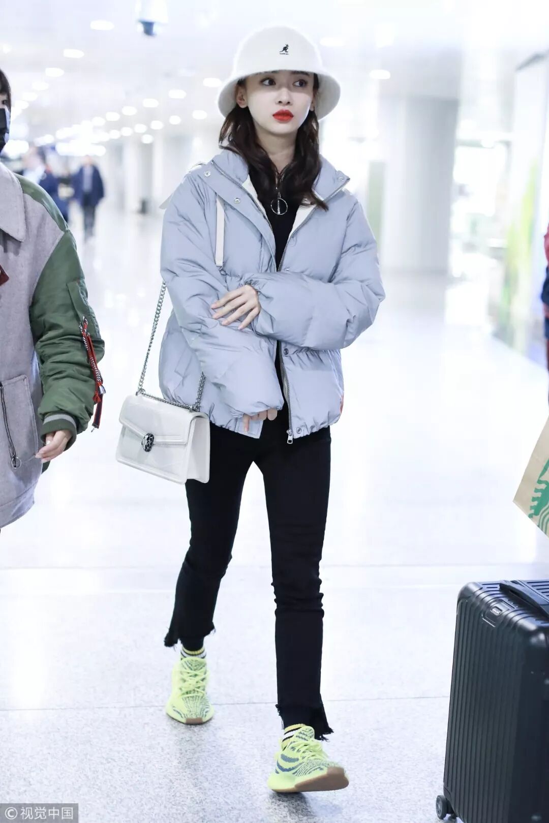 吳謹言身穿灰色羽絨服+白色圓頂毛氈帽清爽又可愛,和她本人的氣質十分相符。內搭的圓形拉鏈高領運動衫和椰子球鞋突出了休閒運動的風格,這樣搭青春又精致而且一點都不臃腫哦。