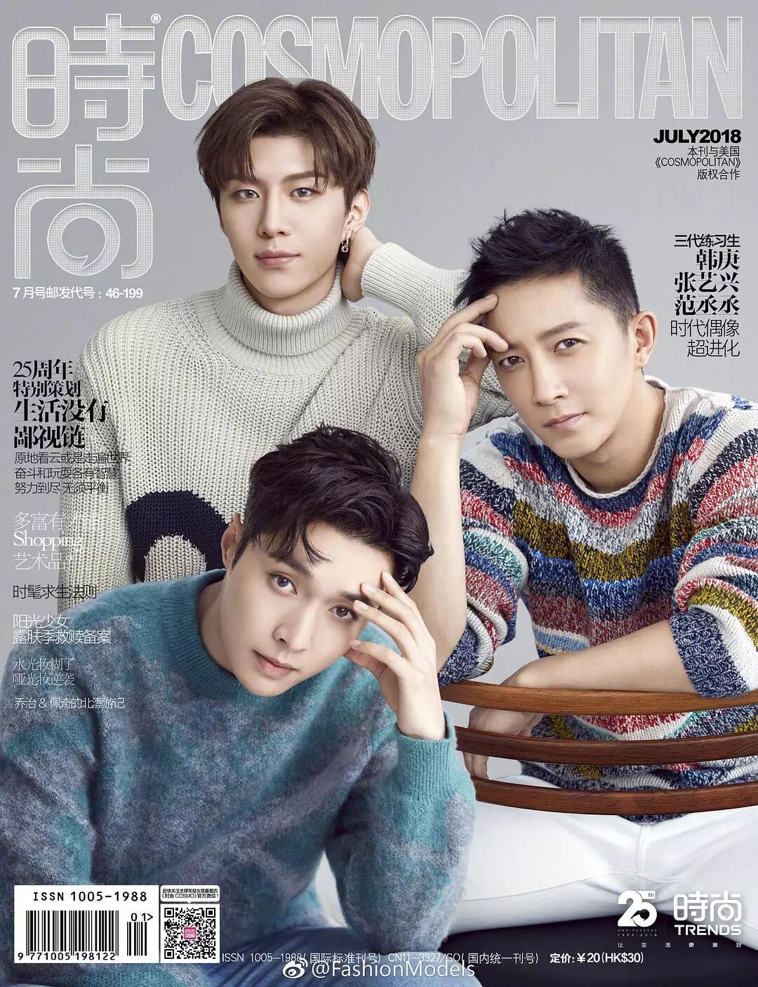作為年初才出道的藝人,范丞丞和資歷較深的兩位,同是練習生出道的前輩,合拍《時尚Cosmo》的7月刊,在同組合出道的練習生中,時尚類的資源領先隊友一截。