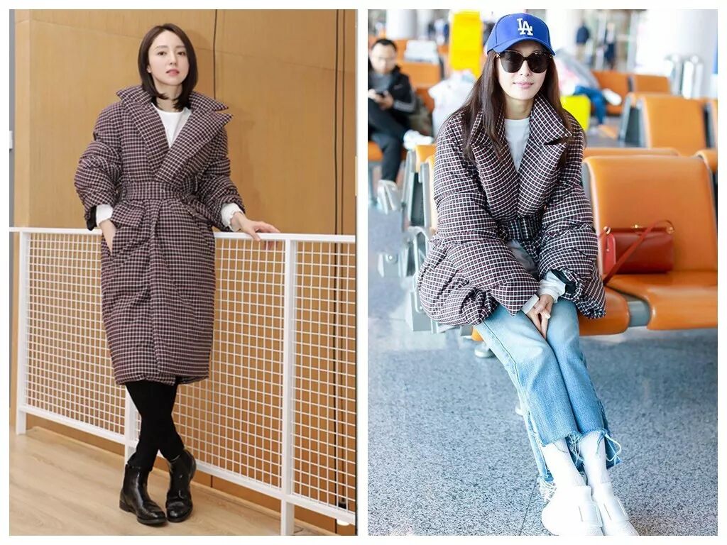 這件IMMI的束腰兩穿式繭形長款羽絨服最近也很火,格紋和純色款紛紛引得男女明星們的頻頻撞衫。看來「棉被束腰式」羽絨服依舊是2019開年的大熱之選。