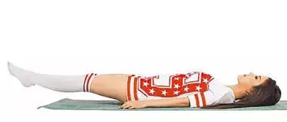 Step2.換左腳抬高與地面成45度,右腳與地面成15度,重復動作1至2共20次,下背需緊貼地面才能正確鍛煉腹部。