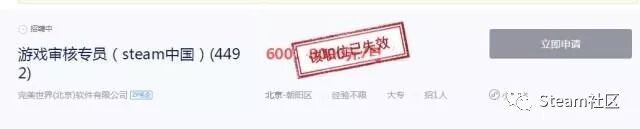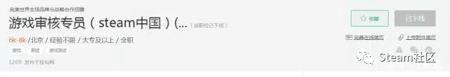 據多家招聘網站顯示,10月份,完美世界正為Steam中國進行招聘,職位為遊戲審核專員。