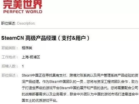 但這不是完美世界首次為「Steam中國」進行招聘。