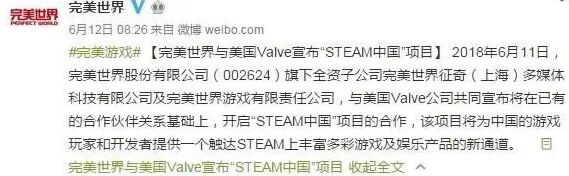 在中國市場的巨大誘惑之下,18年6月12日,V社開始跟完美世界展開合作,要推出「Steam中國」。