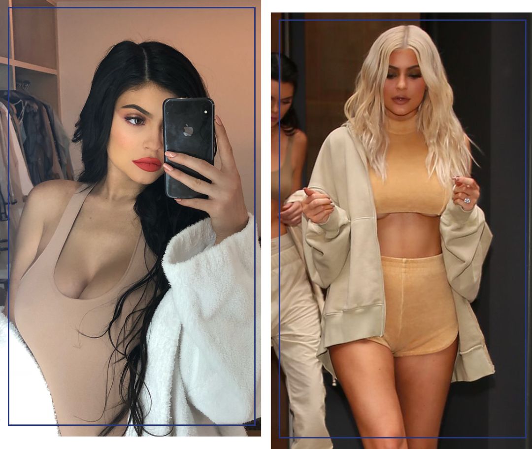 Kylie這兩套比起來,左邊高領露下胸的造型就不會很有負擔。
